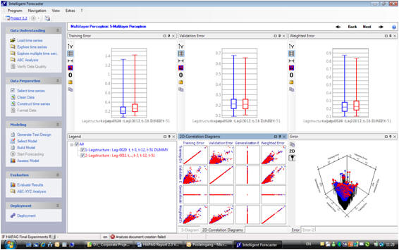 Our flagship product - the forecasting software 'Intelligent Forecaster' - offers state-of-the-art forecasting methods of artificial intelligence incl. neural networks and the novel method class of support vector regression in addition to statistical benchmark methods (e.g. Exponential Smoothing etc) and integrates all functionality of the forecasting process for practitioner experts - including full automation for beginners: